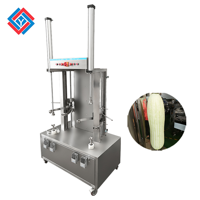 本機適用于木瓜、哈密瓜、西瓜等瓜果削皮,削皮厚薄可調(diào),方便。刀組上下自動循環(huán)削切效率高,去皮率達到95%以上。削皮刀架設(shè)計,可使瓜皮定向排出,方便收集清理。機器拆洗方便,使用時操作簡單,衛(wèi)生,適合餐飲行業(yè),飯?zhí)?,食品加工廠使用。